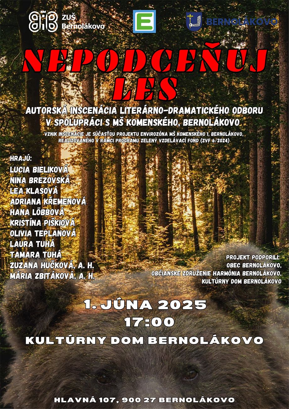 Autorská inscenácia literárno-dramatického odboru vznikla ako súčasť projektu Envirozóna Materskej školy Komenského, realizovaného v rámci programu Zelený vzdelávací fond (ZVF 6/2024) a je výsledkom vzájomného prepojenia umeleckého vzdelávania a environmentálnej výchovy, pričom podčiarkuje význam spolupráce vzdelávacích inštitúcií v obci. Úspešným prijímateľom dotácie je Materská škola Bernolákovo, ktorej zriaďovateľom je Obec Bernolákovo.